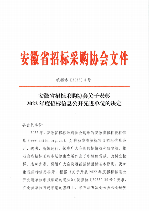 熱烈祝賀安徽和正工程咨詢有限公司---榮獲2022年度招標(biāo)信息公開(kāi)先進(jìn)單位