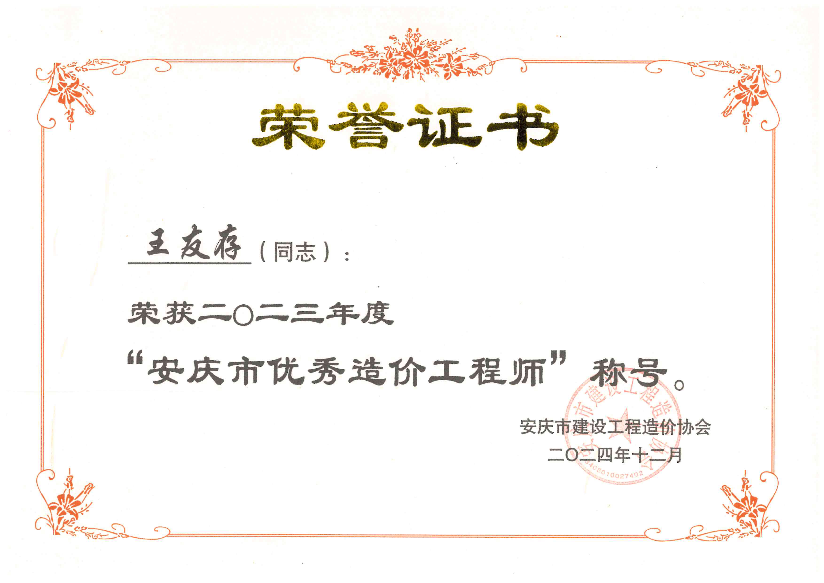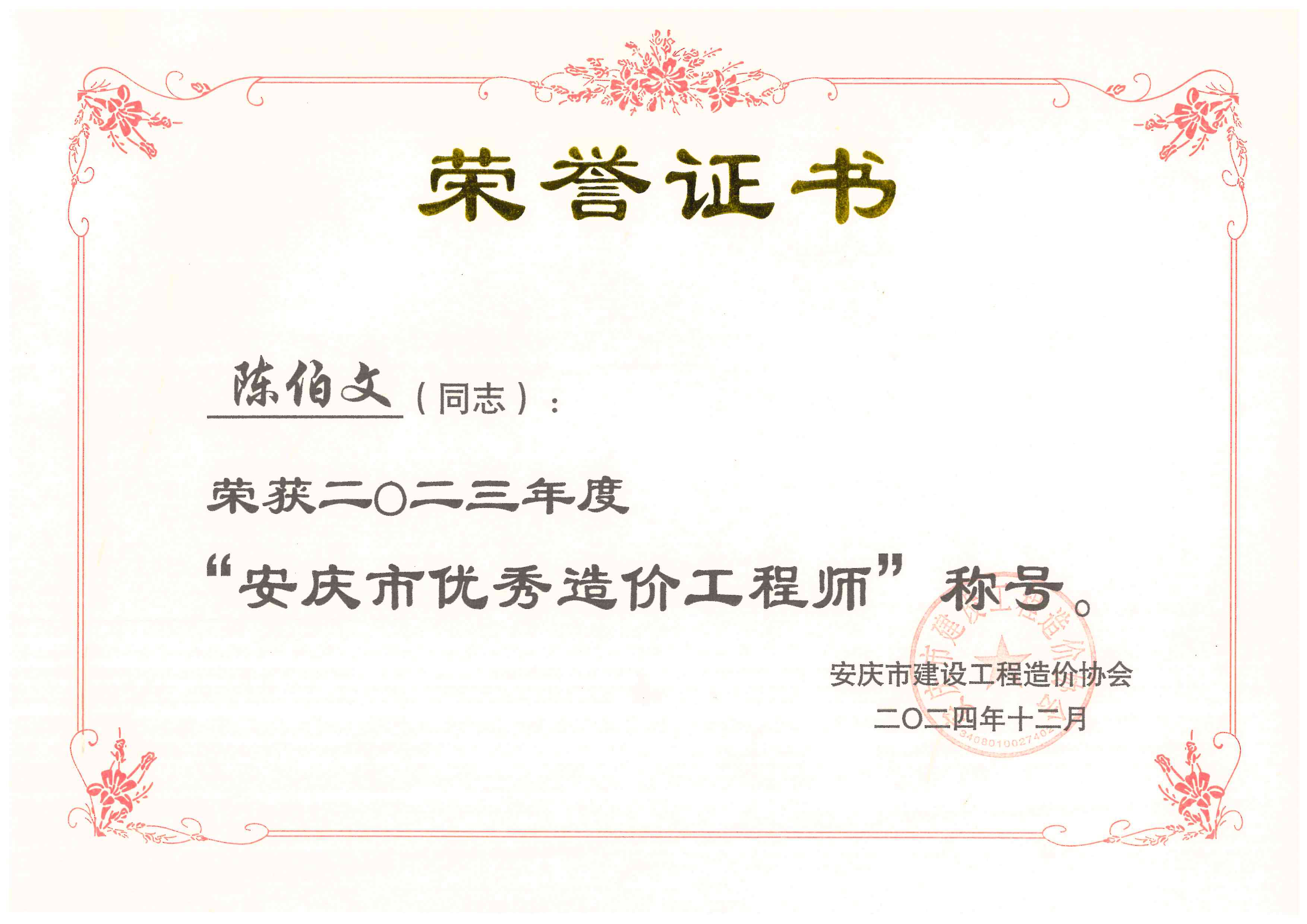 近日,安慶市建設(shè)工程造價協(xié)會發(fā)布了《關(guān)于公布2023年度安慶市優(yōu)秀工程造價咨詢企業(yè)及優(yōu)秀造價人員評選結(jié)果的通知》,公司榮獲“2023年度優(yōu)秀工程造價咨詢企業(yè)”、“2023年度安慶市優(yōu)秀造價人員”多項榮譽。