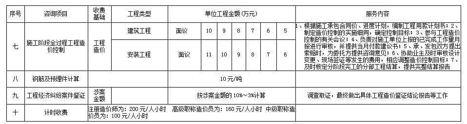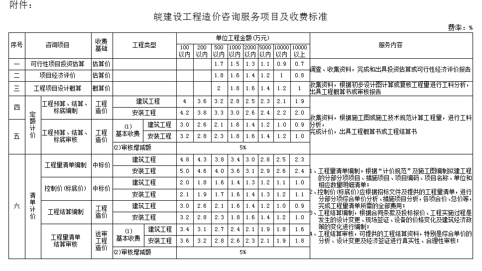 皖建設(shè)工程造價咨詢服務(wù)項目及收費標準